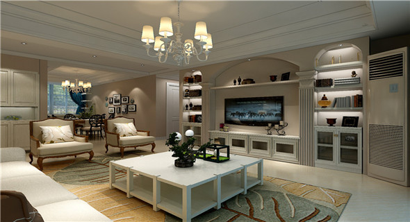 一塵不染、素凈澄明。用平靜的心靈看世界,利用淡淡的家具布局把原有的'空間凈化,把氣質和品位含蓄地表現出來……